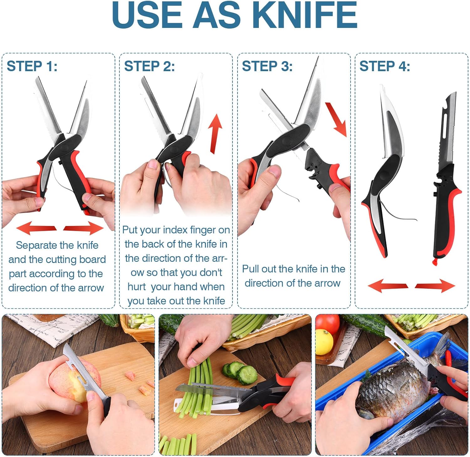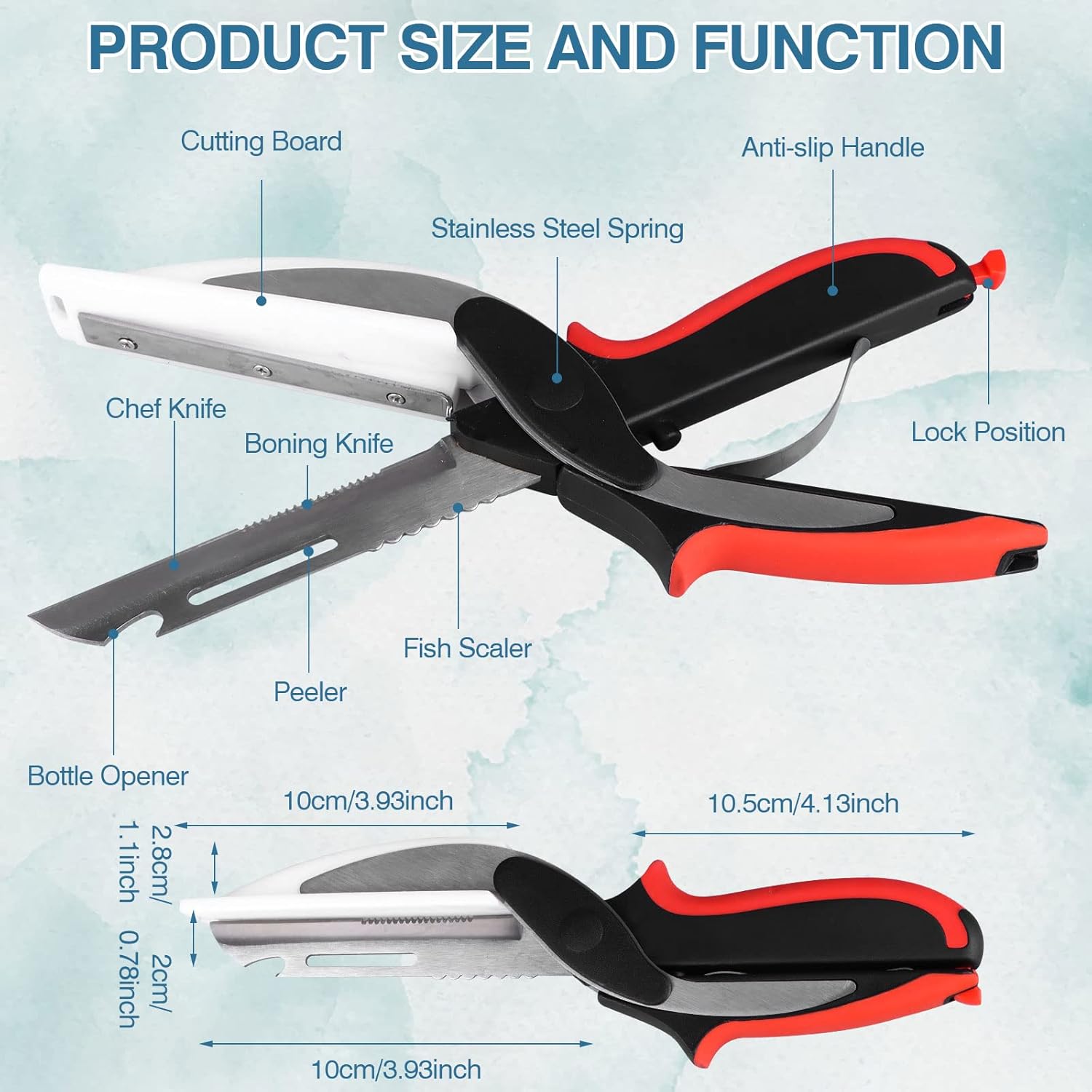 One tool replaces sixāstop switching between knives, peelers, and choppers. These smart scissors feature aĀ builtāin detachable cutting boardĀ and combineĀ six essential kitchen functionsĀ in one sturdy, comfortable tool.